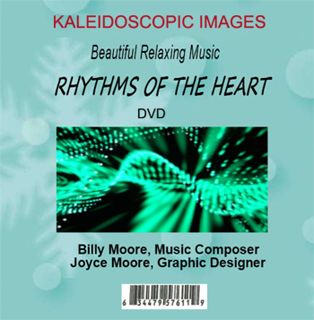 Rhythms of the Heart: Sounds for RelaxationA Video (DVD) by Billy MooreExtraordinary Kaleidoscopic Images(33 min) This DVD video is designed to enhance your many pleasures, tapping into your unique auditory and visual creative senses as you listen to relaxing music and view the colorful kaleidoscopic patterns.